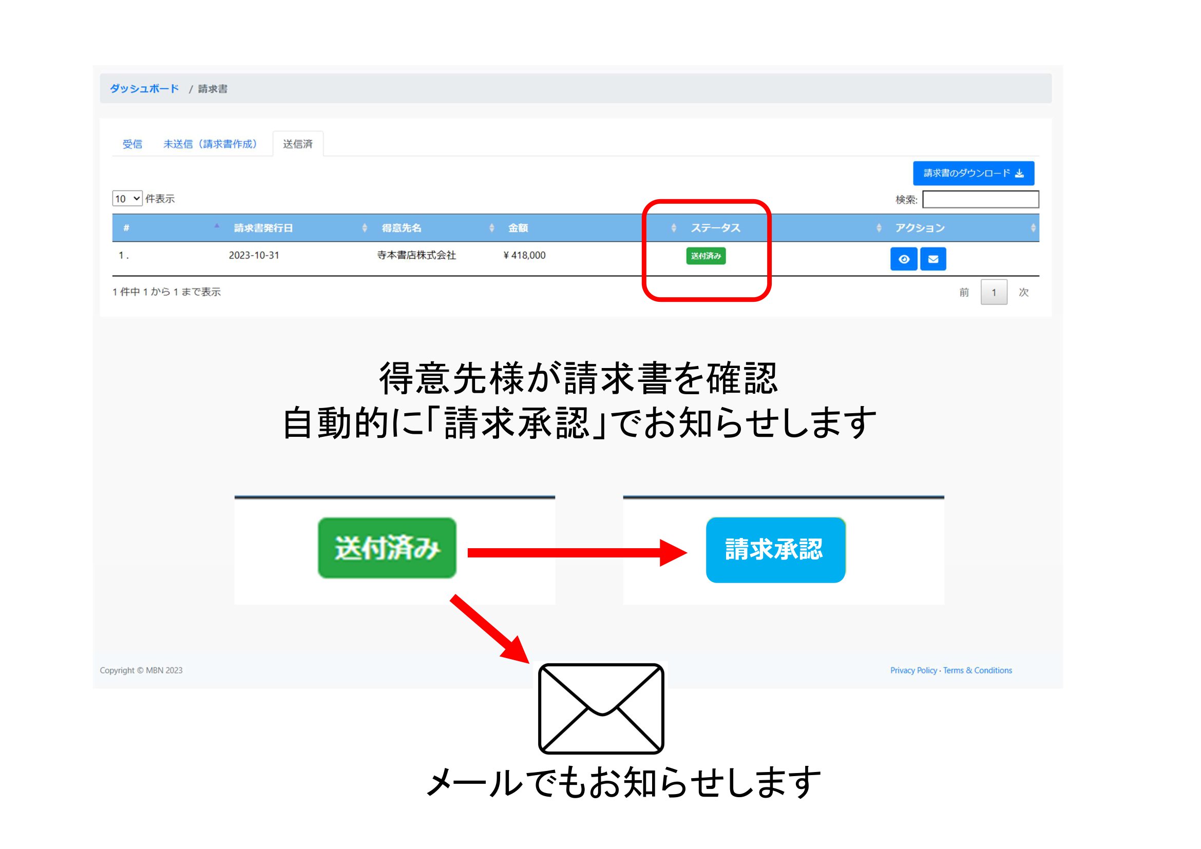 可能です。送信した得意先ごとに請求書の管理と帳簿保存をすることができます