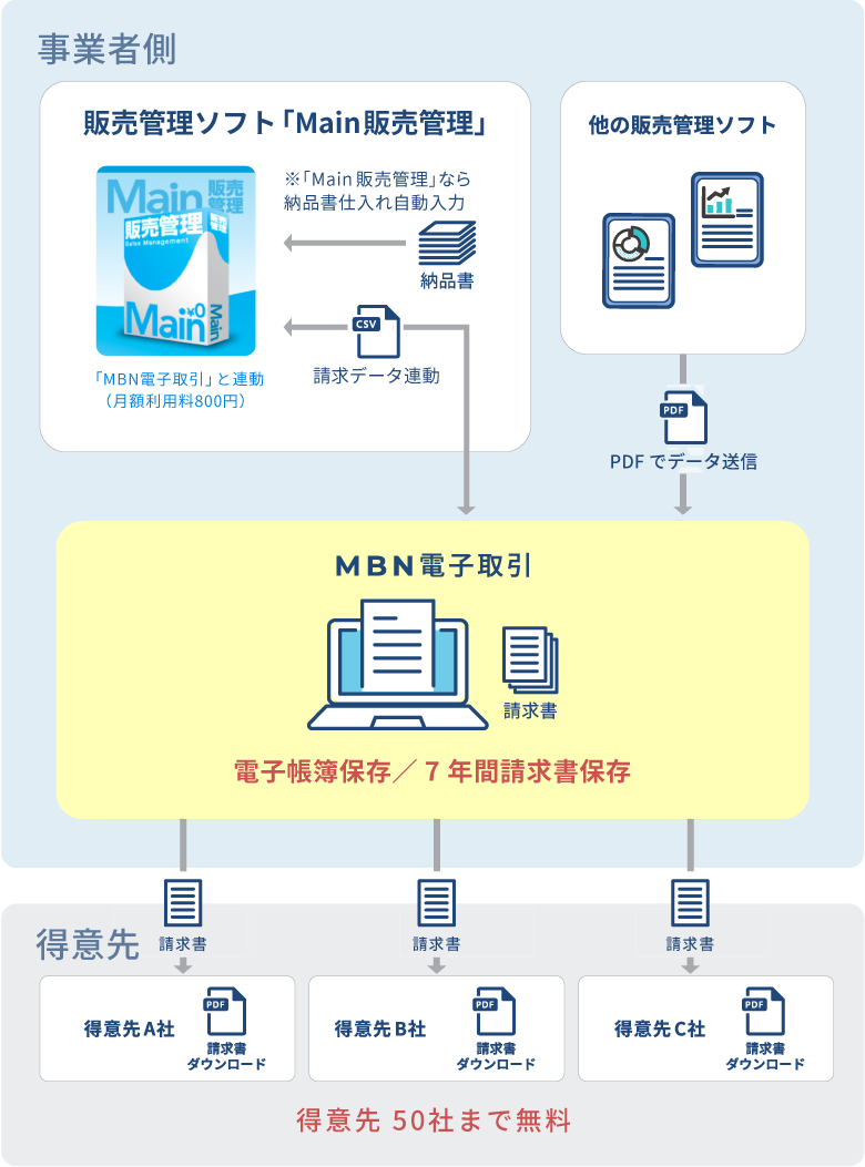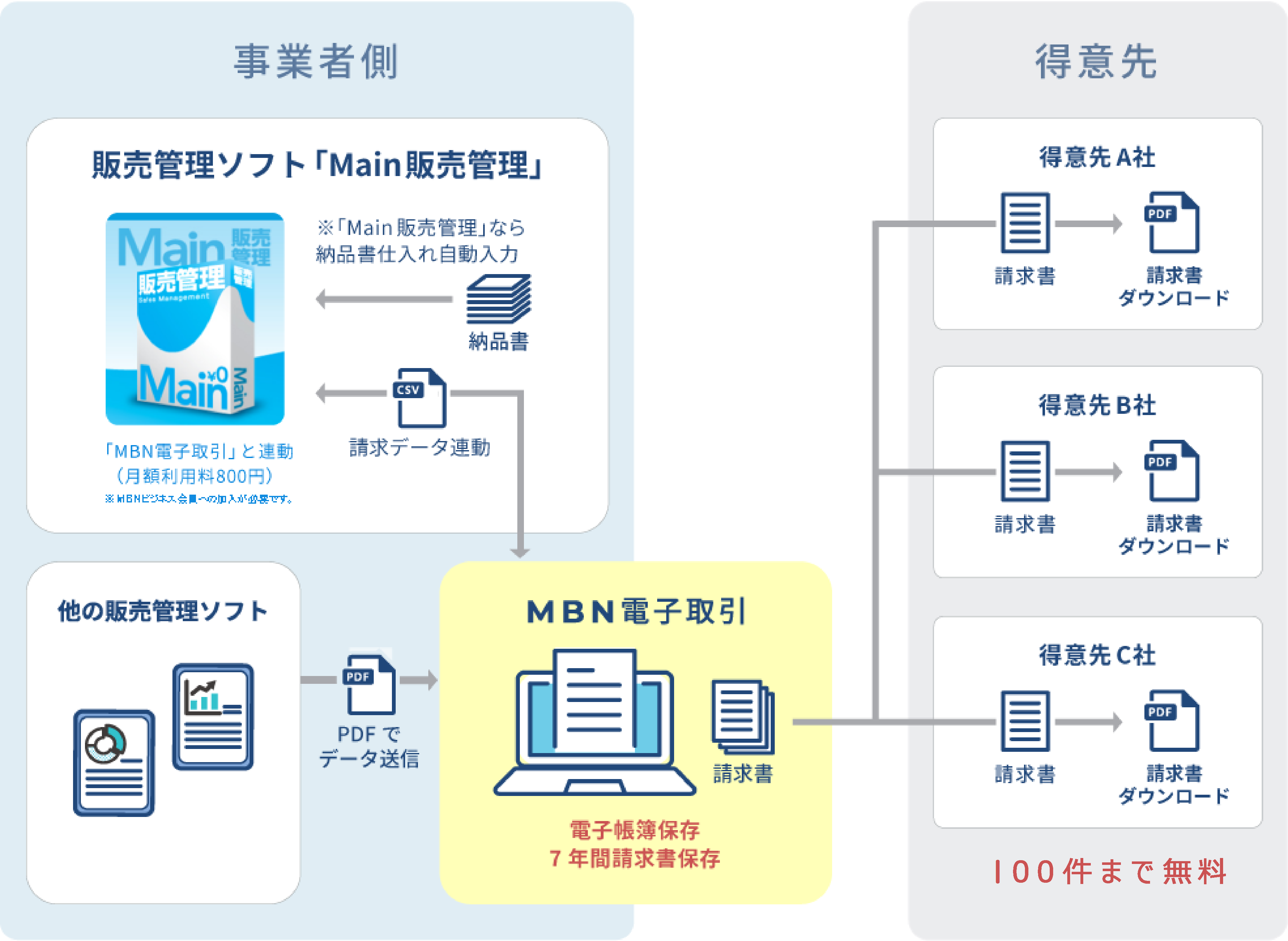 | Main販売管理との連動 ※MBNビジネス会員への加入が必要です。 |